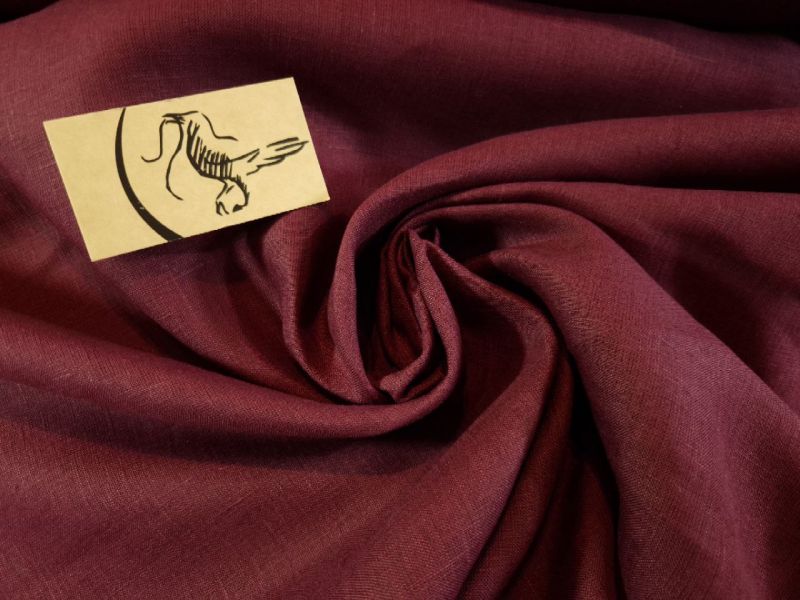 Ткань Лён 100% ткань цвет Бордо КРЭШЛьняная тёмно-красная ткань для пошива одежды. Мягкая ткань, прошла дополнительные обработки и поэтому обладает минимальной сминаемостью и малой усадкой после стирки.