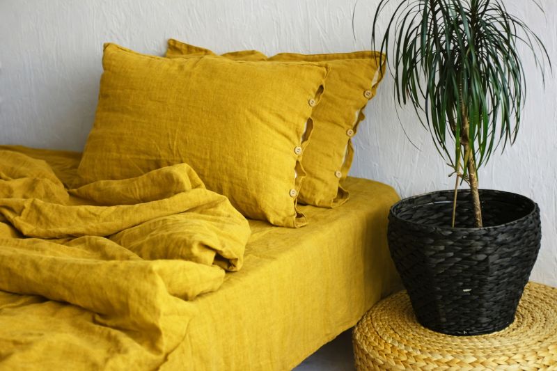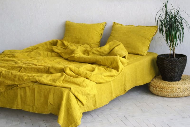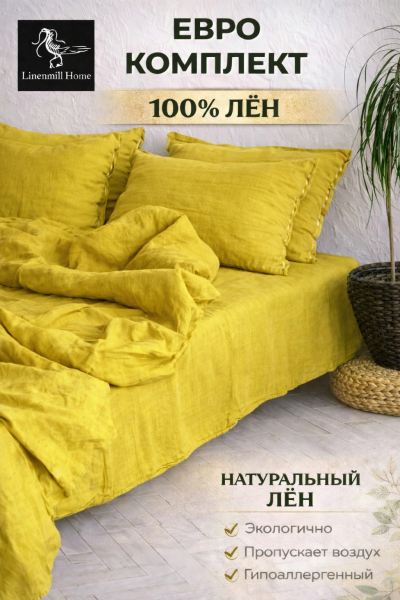 Лён — прочное натуральное волокно с выраженной фактурой и характерной матовой поверхностью. Ткань обеспечивает высокую воздухопроницаемость и эффективно отводит влагу, создавая стабильный микроклимат во время сна. Материал сохраняет форму, устойчив к износу и становится мягче после каждой стирки без потери прочности.