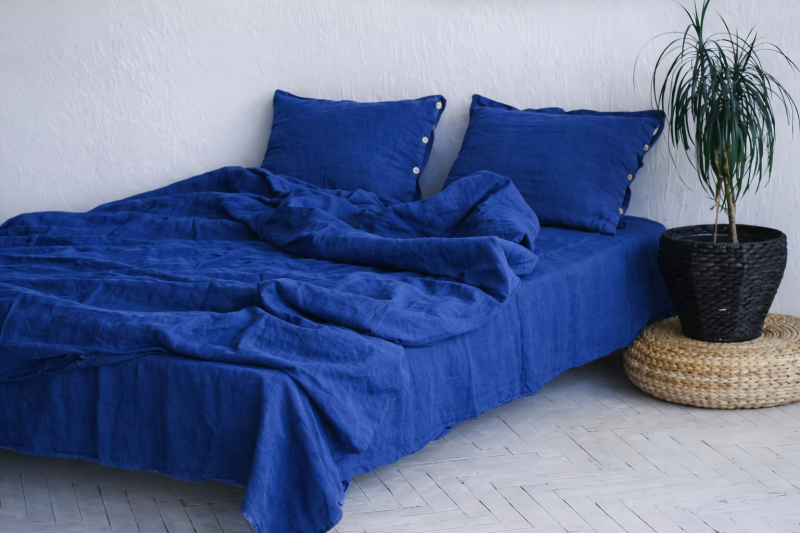 Постельное белье цвета морской волны из 100% льна формата- евро.