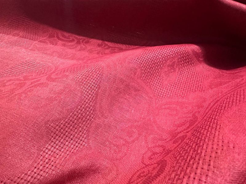 Даже при ежедневной эксплуатации в условиях общепита скатерть из льняной ткани прослужит намного дольше других, например, синтетических. Льняную ткань трудно прожечь сигаретой и даже упаший уголь с кальяна не нанесет большого вреда скатерти из льна, в отличии от синтетических. Жаккардовая ткань для скатерти Красного цвета купить в интернет-магазине iz-lna.ru. У нас вы можете приобрести продукцию высокого качества по низкой цене. Продажа Жаккардовой ткани для скатерти оптом и в розницу.