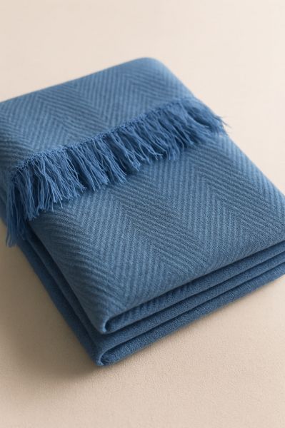 Синий плед большого размера с классическом строгим рисунком. Плед изготовлен из умягчённой льняной ткани, которая с легкостью стирается и выдержит большое количество циклов стирки, сохраняя внешний вид.