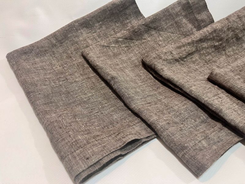 Столовая сервировочная салфетка из натурального льна для украшения стола или как кухонное полотенце. Прочная и износостойкая салфетка с эффектом меланж на ткани коричневого цвета.